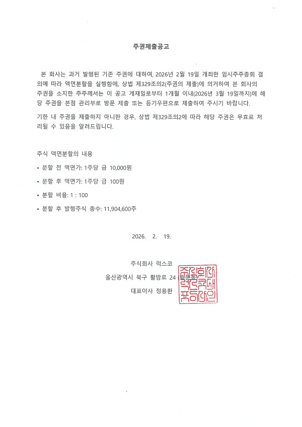 주권 제출 공고